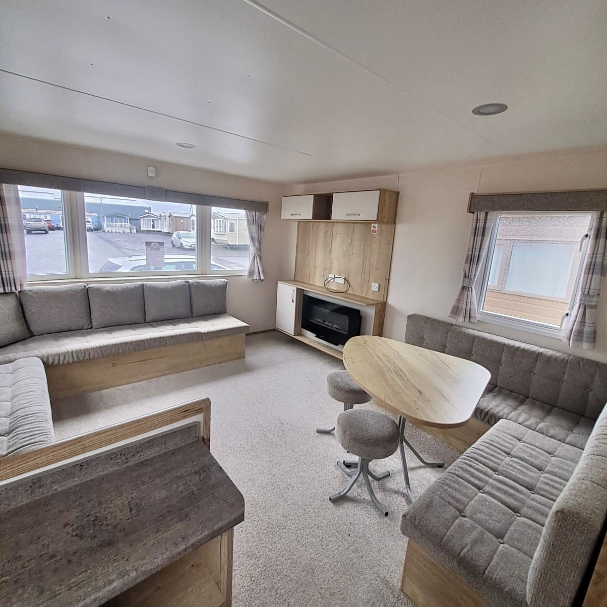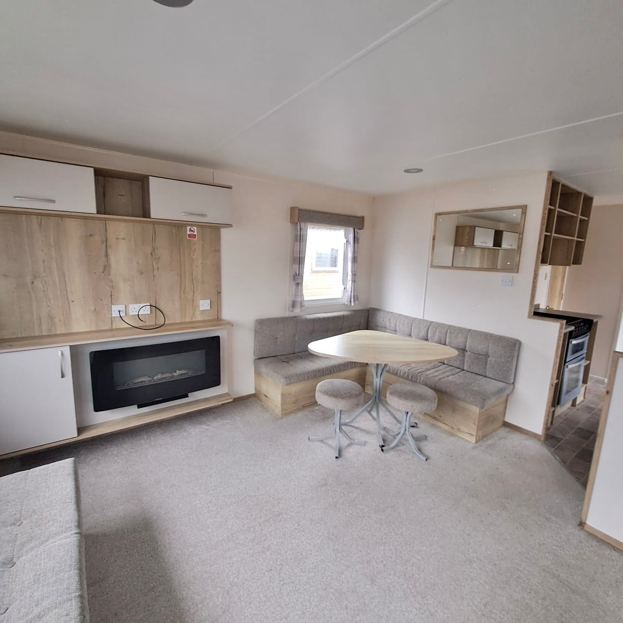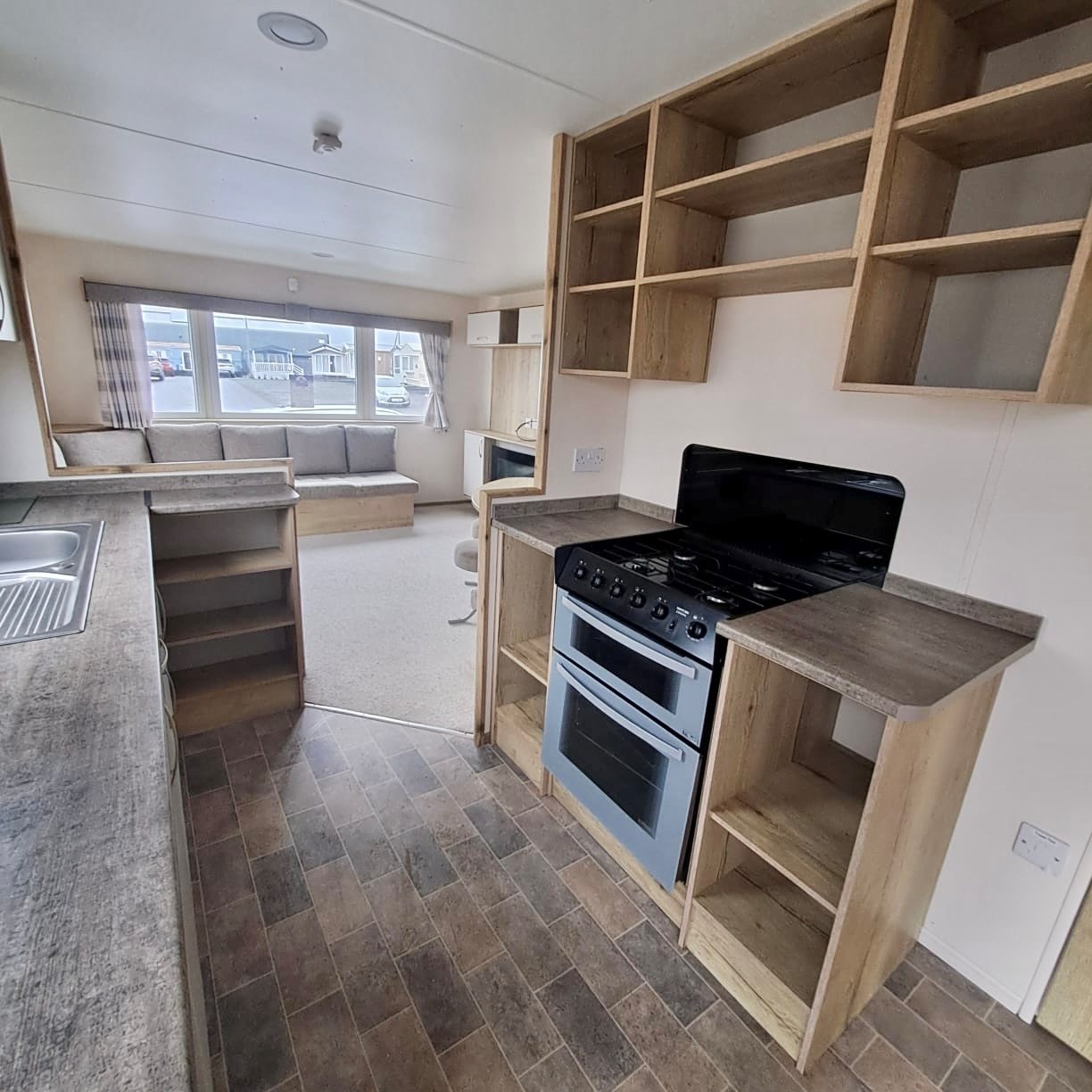 L shaped fixed seating soda with sofa bed - comfortable, spacious open plan living, suitable for family