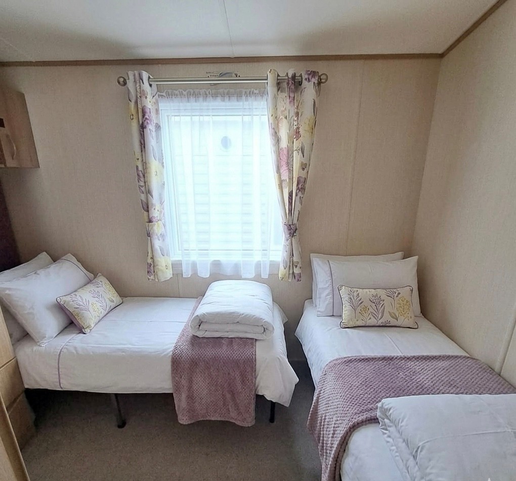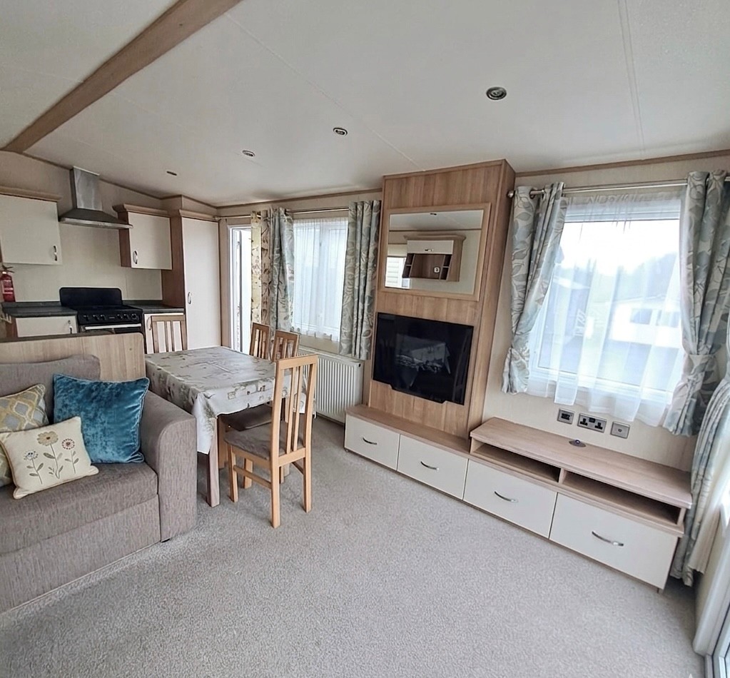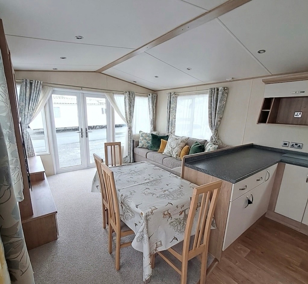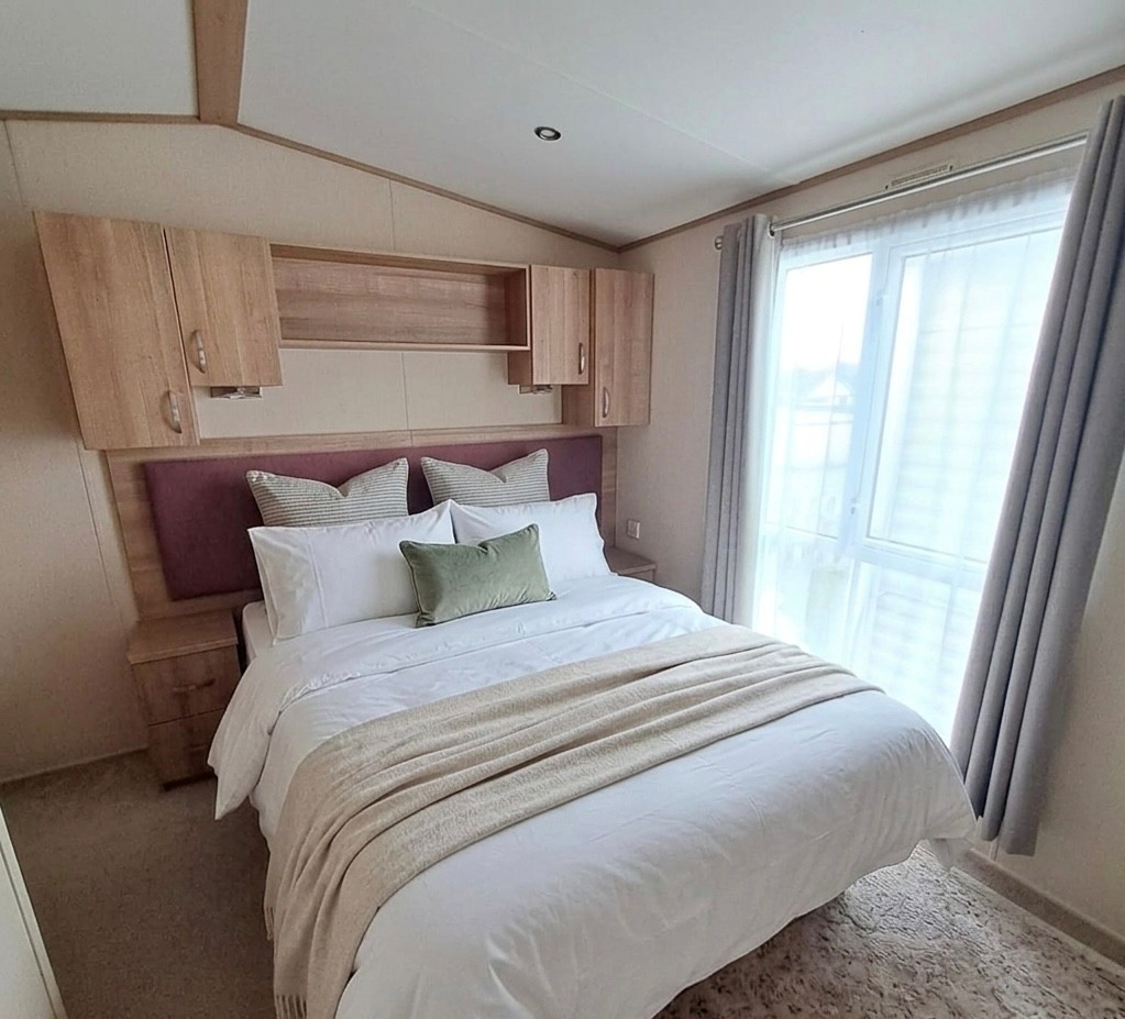 BARGAIN - Sunningdale Super - 38 x 12 with 2 double bedrooms, 2 toilets, a BATH, double glazing & central heating with front opening patio doors