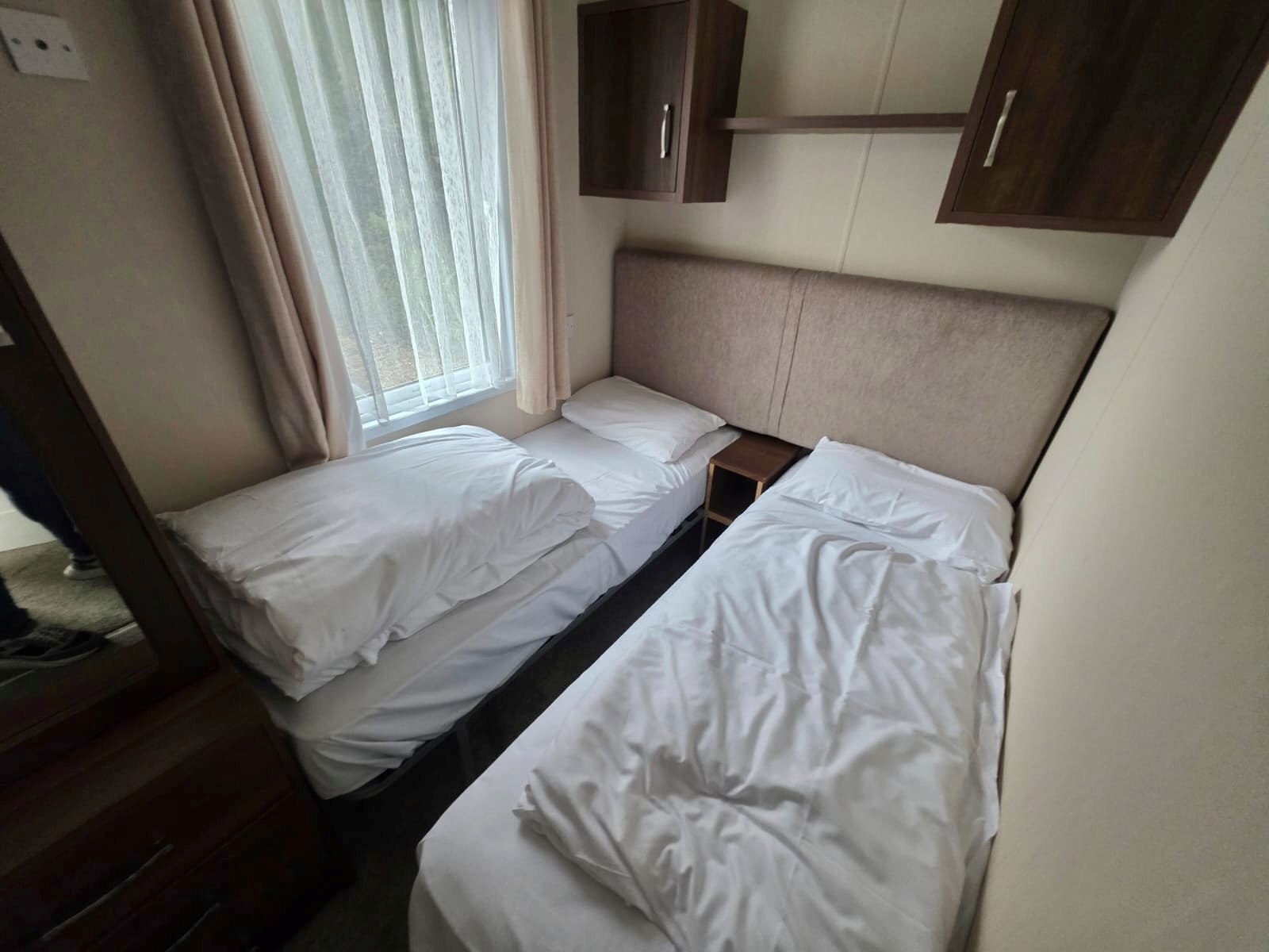 2 twin bedrooms - overhead storage, built in wardrobes with fitted mirrors, TV points, fitted headboards