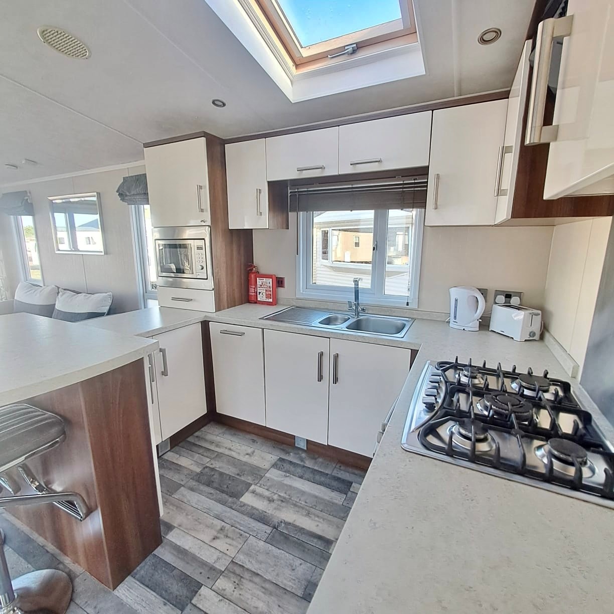 veluxe skylight - pitch pantile roof - glossy kitchen worktop cupboards and plenty of space