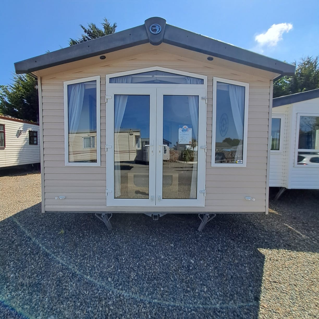this Swift Bordeaux Exclusive is a 38 foot long by 12 feet wide caravan with 3 bedrooms