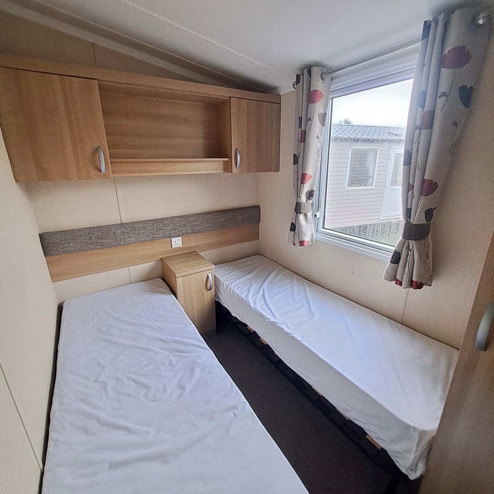 twin rooms have ample spaces overhead storage and full length wardrobes