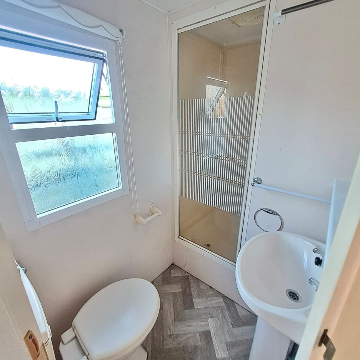 step in shower room with sink toilet and basin extra wider window