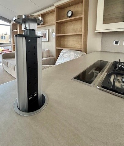 pull up multiple plug socket built into the worktop