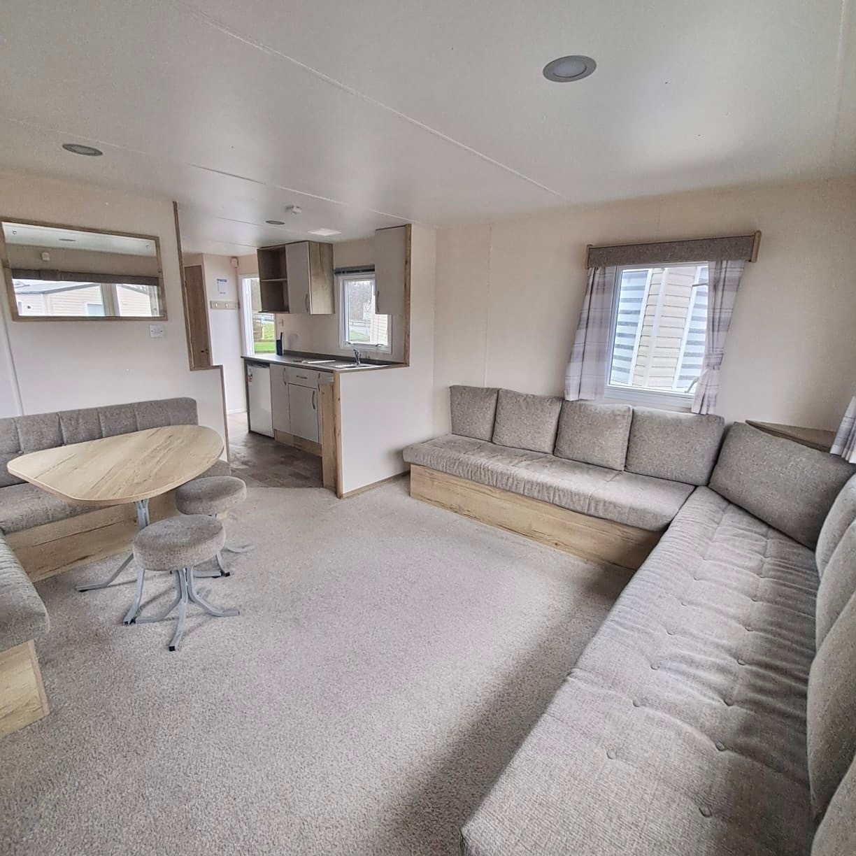 L shaped fixed seating soda with sofa bed - comfortable, spacious open plan living, suitable for family