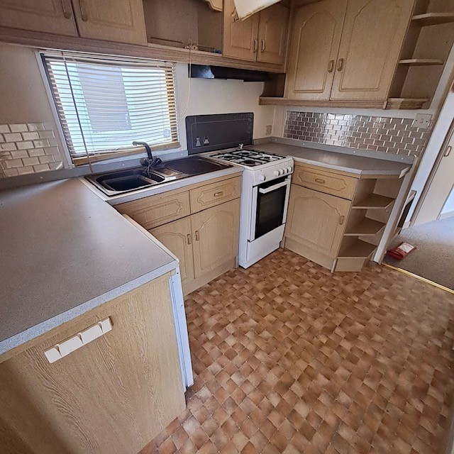 gas fire ( not tested ) TV unit, archway style kitchen walk through