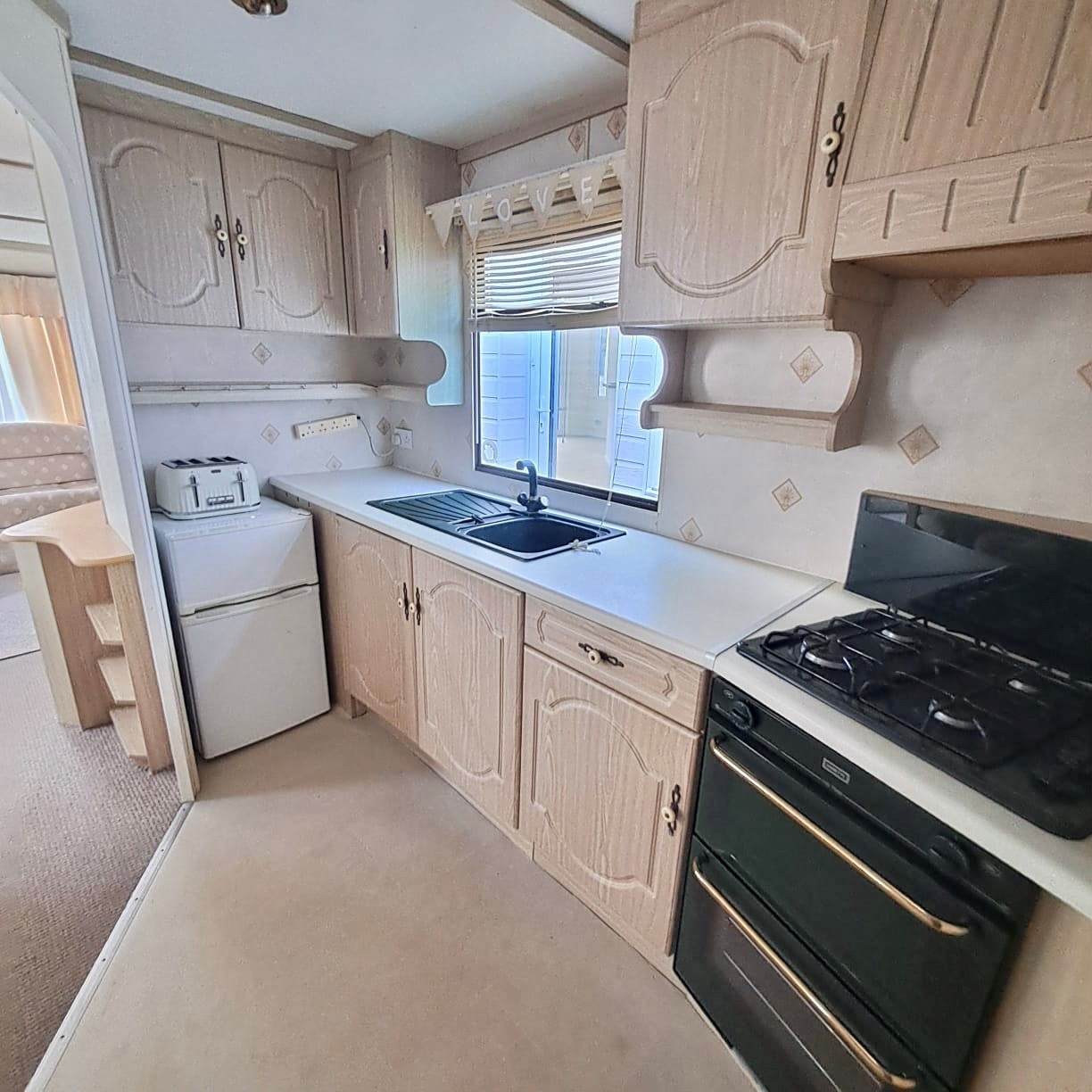 overall in fair clean, comfortable caravan - pitched roof - with 2 exterior doors