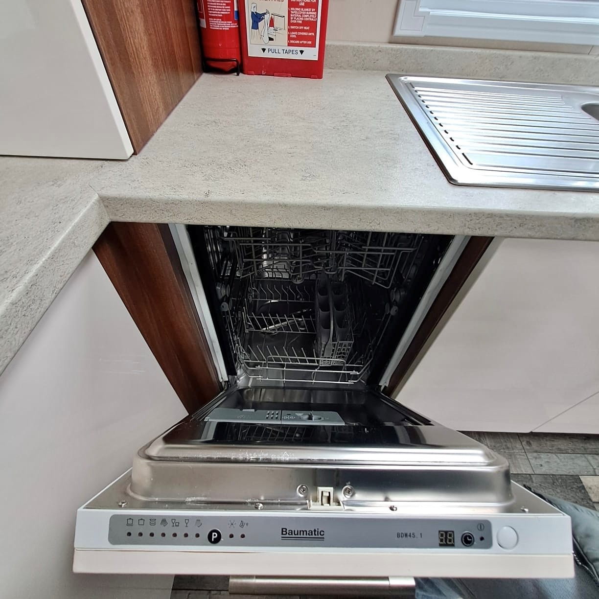 built in fitted kitchen with all mod cons - microwave integrated fridge freezer & dishwasher,
