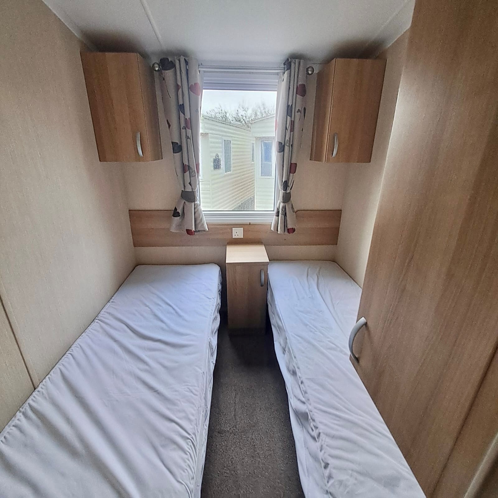 twin rooms have ample spaces overhead storage and full length wardrobes